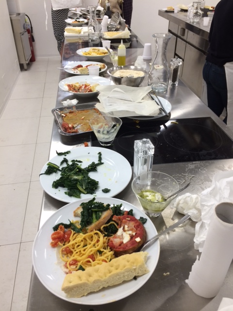 Everything we were taught in the class made us realize that Italian cooking, the right way isn’t just a hobby or something that mother’s do when the come home from work because they have to–it is an art. Everything has a specific process, an order on which each ingredient has to be added into the pan, and how to properly multitask in order to make sure everything is ready at the same time. Also, be liberal with the olive oil–it is good for your hair and heart so we doused everything.