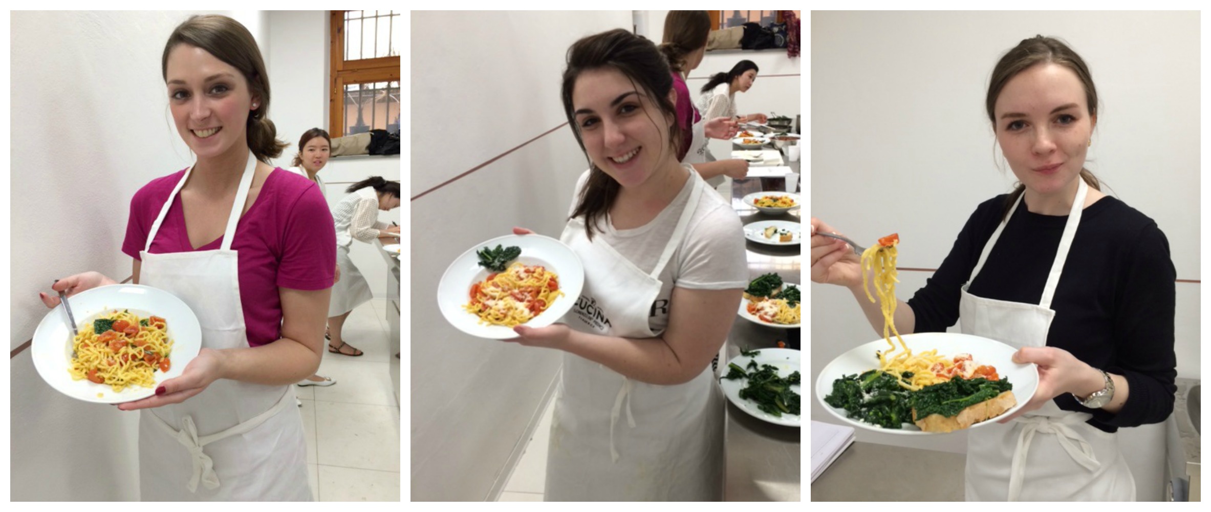 And right when everything was done, we had been working so hard we were sweating! But by the third course, we were SO FULL! Groaning filled the kitchen as all we wanted to do was eat everything in sight but knew we would explode if we did…I think my favorite courses were the homemade focaccia bread, the fresh pasta, and dessert! I can’t wait to try and make that sweet ricotta cream again, it was so good and I want to try it with strawberries! So delicious! And the best part? We didn’t have to clean up our own mess!